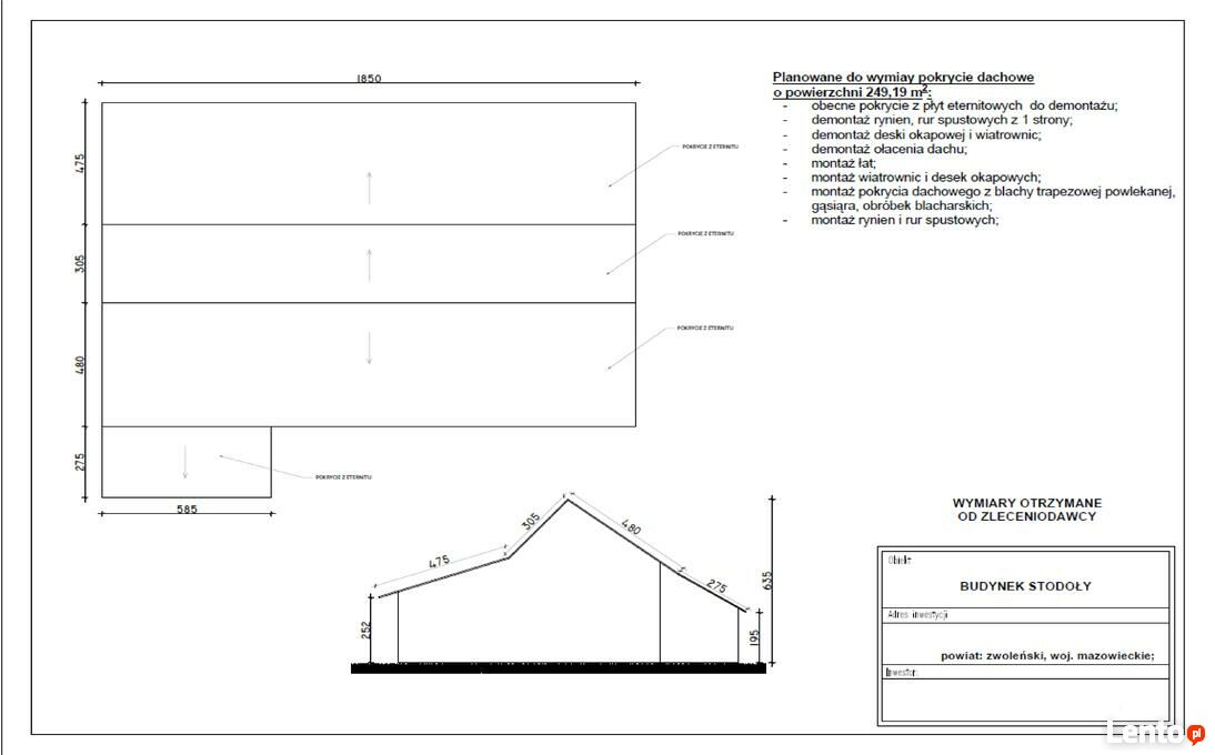 - inwentaryzacja do wykonania kosztorysu i przedmiaru robót przy pozyskaniu dotacji m.in. z ARiMR, LGD, MOPS, PFRON,