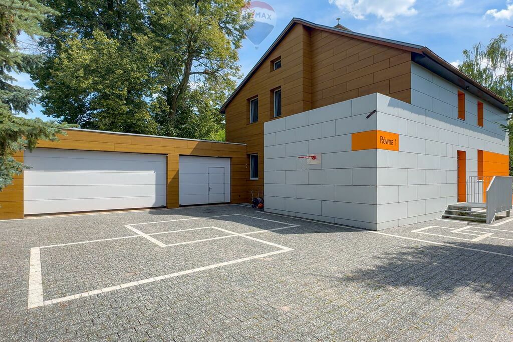 trzy samochody (60 m2), ogromny drewniany taras (52 m2) z zejściem do